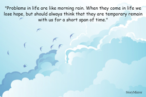 "Problems in life are like morning rain. When they come in life we lose hope, but should always think that they are temporary remain with us for a short span of time."