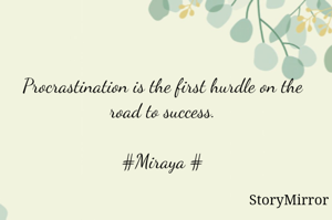 Procrastination is the first hurdle on the road to success. #Miraya #
