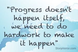 "Progress doesn't happen itself, we need to do hardwork to make it happen"
