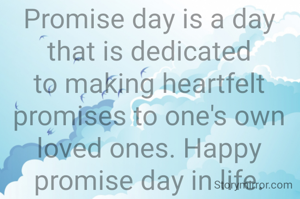Promise day is a day that is dedicated to making heartfelt promises to one's own loved ones. Happy promise day in life.