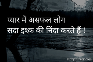 प्यार में असफल लोग सदा इश्क़ की निंदा करते हैं !