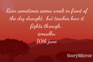 Rain sometimes seems weak in front of the dry drought.. but teaches how it fights through.. @madhu 10th june