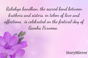 Rakshya bandhan, the sacred bond between brothers and sisters, in token of love and affections, is celebrated on the festival day of Gamha Purnima.