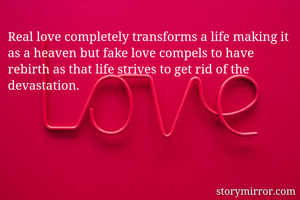 Real love completely transforms a life making it as a heaven but fake love compels to have rebirth as that life strives to get rid of the devastation.