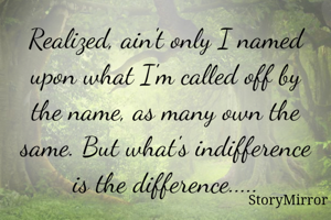 Realized, ain't only I named upon what I'm called off by the name, as many own the same. But what's indifference is the difference.....