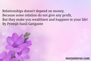 Relationships doesn't depend on money, Because some relation do not give any profit, But they make you wealthiest and happiest in your life! By Premjit Sunil Gatigante