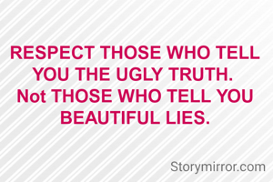 RESPECT THOSE WHO TELL YOU THE UGLY TRUTH. Not THOSE WHO TELL YOU BEAUTIFUL LIES.