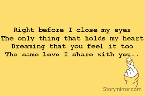 Right before I close my eyes The only thing that holds my heart Dreaming that you feel it too The same love I share with you..
