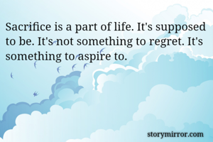Sacrifice is a part of life. It's supposed to be. It's not something to regret. It's something to aspire to.