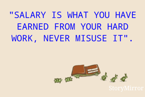 "SALARY IS WHAT YOU HAVE EARNED FROM YOUR HARD WORK, NEVER MISUSE IT".