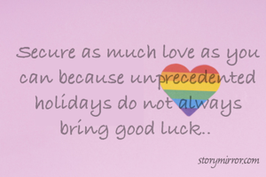 Secure as much love as you can because unprecedented holidays do not always bring good luck..