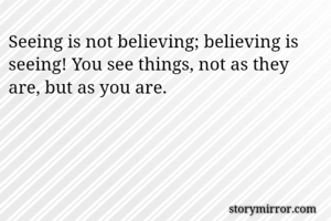 Seeing is not believing; believing is seeing! You see things, not as they are, but as you are.