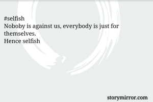 #selfish Noboby is against us, everybody is just for themselves. Hence selfish