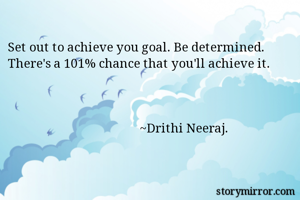 Set out to achieve you goal. Be determined. There's a 101% chance that you'll achieve it. ~Drithi Neeraj.