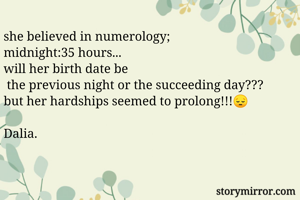 she believed in numerology; midnight:35 hours... will her birth date be the previous night or the succeeding day??? but her hardships seemed to prolong!!!😔 Dalia.