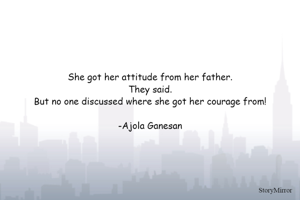 She got her attitude from her father. They said. But no one discussed where she got her courage from! -Ajola Ganesan