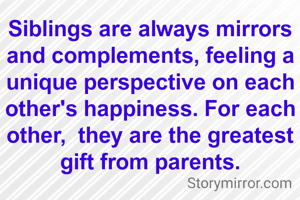 Siblings are always mirrors and complements, feeling a unique perspective on each other's happiness. For each other, they are the greatest gift from parents.