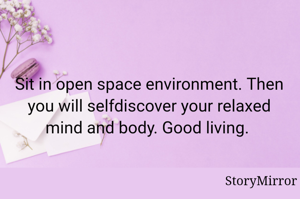 Sit in open space environment. Then you will selfdiscover your relaxed mind and body. Good living.