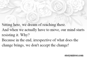 Sitting here, we dream of reaching there. And when we actually have to move, our mind starts resisting it. Why? Because in the end, irrespective of what does the change brings, we don't accept the change!