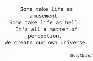 Some take life as amusement. Some take life as hell. It's all a matter of perception. We create our own universe.
