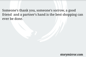Someone's thank you, someone's sorrow, a good friend and a partner's hand is the best shopping can ever be done.