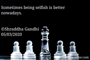 Sometimes being selfish is better nowadays. ©Shraddha Gandhi 05/03/2020