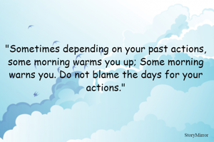 "Sometimes depending on your past actions, some morning warms you up; Some morning warns you. Do not blame the days for your actions."