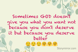 Sometimes GOD doesn't give you what you want not because you don't deserve it but because you deserve better 😌😌😌🤗🤗🤗
