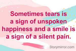 Sometimes tears is a sign of unspoken happiness and a smile is a sign of a silent pain.