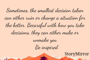Sometimes, the smallest decision taken can either ruin or change a situation for the better. Becareful with how you take decisions, they can either make or unmake you Be inspired