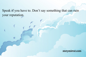 Speak if you have to. Don’t say something that can ruin your reputation.