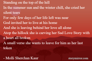 Atop the hillock she is carving her Sad Love Story with a heart all broken