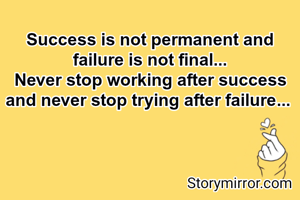 Success is not permanent and failure is not final... Never stop working after success and never stop trying after failure...