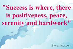 "Success is where, there is positiveness, peace, serenity and hardwork"