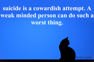suicide is a cowardish attempt. A weak minded person can do such a worst thing.