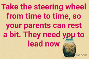 Take the steering wheel from time to time, so your parents can rest a bit. They need you to lead now