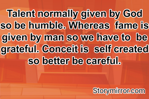 Talent normally given by God so be humble. Whereas fame is given by man so we have to be grateful. Conceit is self created so better be careful.
