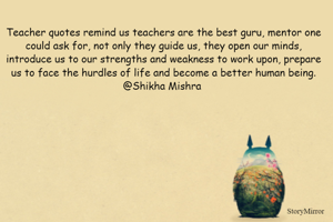 Teacher quotes remind us teachers are the best guru, mentor one could ask for, not only they guide us, they open our minds, introduce us to our strengths and weakness to work upon, prepare us to face the hurdles of life and become a better human being.