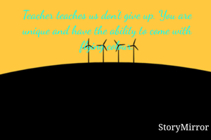 Teacher teaches us don't give up. You are unique and have the ability to come with flying colour.