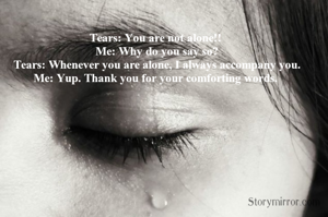 Tears: You are not alone!! Me: Why do you say so? Tears: Whenever you are alone, I always accompany you. Me: Yup. Thank you for your comforting words.