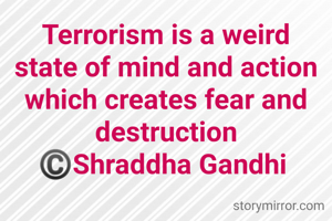 Terrorism is a weird state of mind and action which creates fear and destruction ©️Shraddha Gandhi