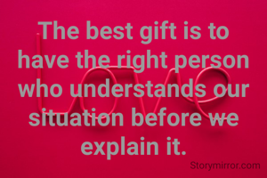The best gift is to have the right person who understands our situation before we explain it.
