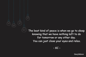 The best kind of peace is when we go to sleep knowing that we have nothing left to do for tomorrow or any other day. You can just close your eyes and relax. - KC -