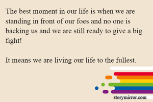 The best moment in our life is when we are standing in front of our foes and no one is backing us and we are still ready to give a big fight! It means we are living our life to the fullest.