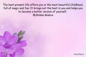 The best present life offers you is the most beautiful Childhood, full of magic and fun. It brings out the best in you and helps you to become a better version of yourself. @Shikha Mishra