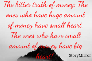 The bitter truth of money: The ones who have huge amount of money have small heart, The ones who have small amount of money have big heart!