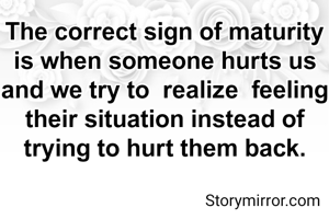 The correct sign of maturity is when someone hurts us and we try to realize feeling their situation instead of trying to hurt them back.