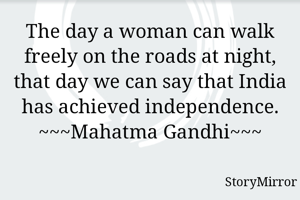 The day a woman can walk freely on the roads at night, that day we can say that India has achieved independence.