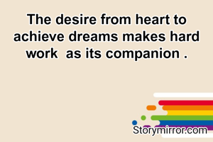 The desire from heart to achieve dreams makes hard work as its companion .