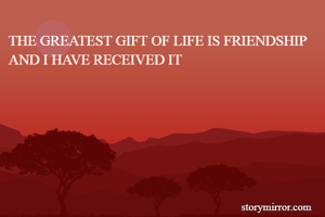 THE GREATEST GIFT OF LIFE IS FRIENDSHIP AND I HAVE RECEIVED IT